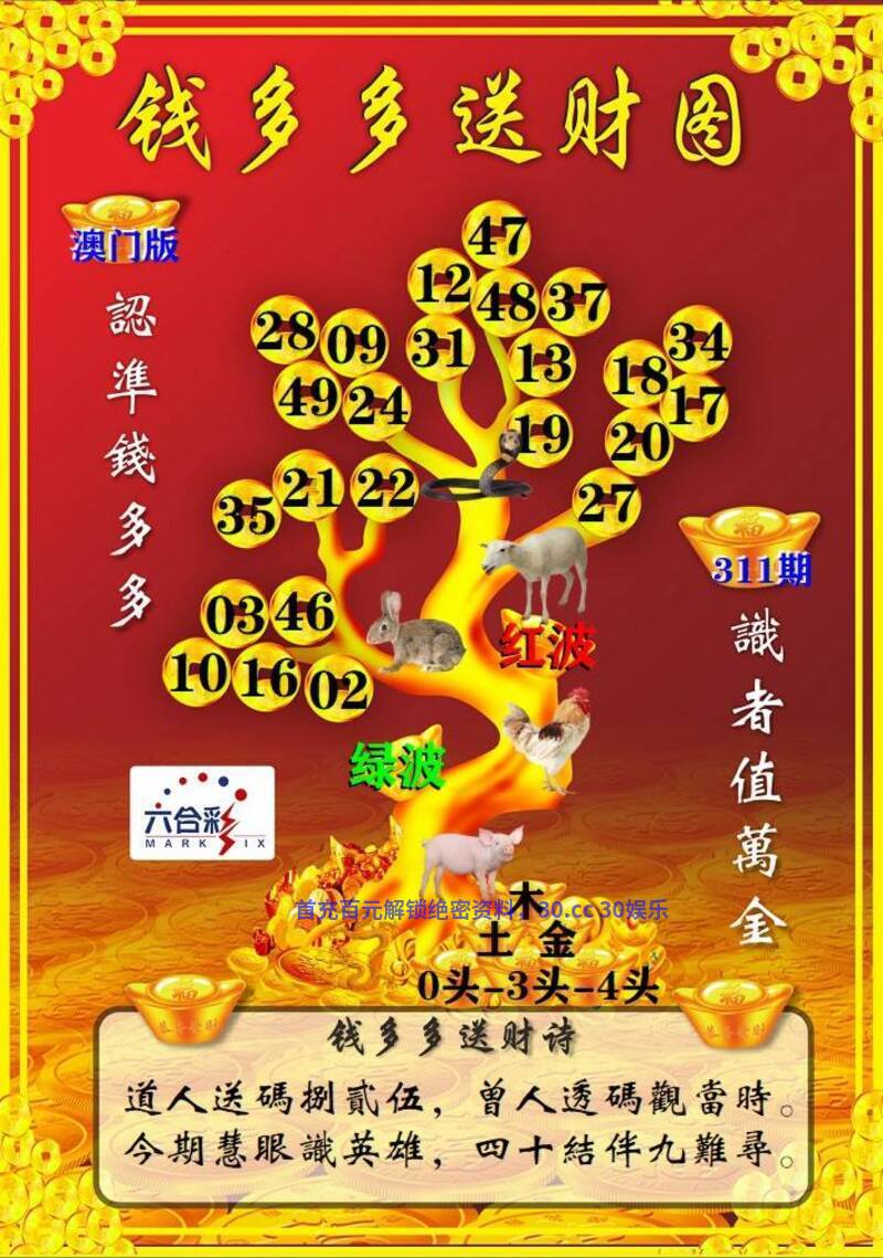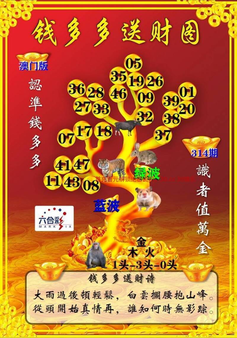 315期【单笔双笔】买码必看| 钱多多【聚宝盆彩报】59914.com |