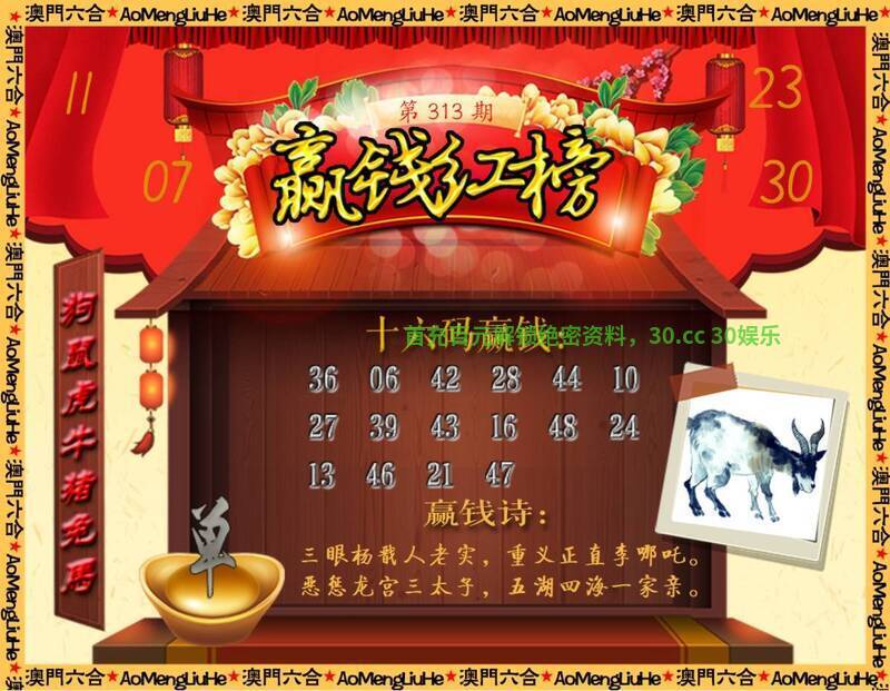 | 314期:三头中特【1-2-3头】开:羊23准 |